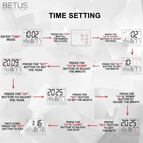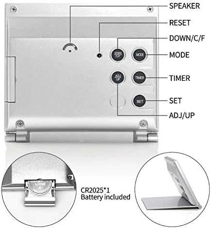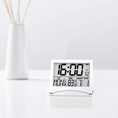 Betus Digital Travel Alarm Clock - Foldable Calendar Temperature Timer LCD Clock with Snooze Mode - Large Number Display, Battery Operated - Compact Desk Clock(Silver, No Backlight)