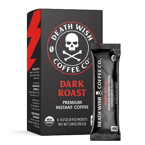 Death Wish Coffee Instant Dark Roast Coffee Packets, Bold & Intense Blend of Arabica & Robusta Beans, USDA Organic, 8 Count