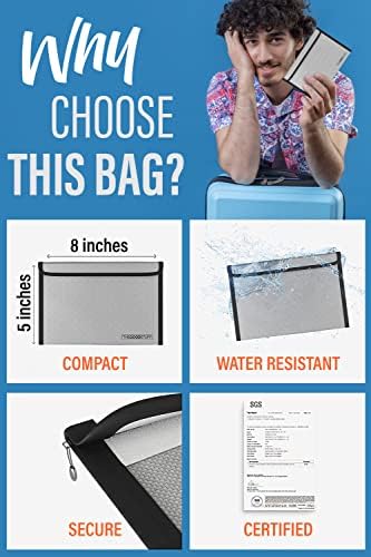 Fireproof Document Bag Envelope Size: 8" x 5" [2000°F UL Certified] Fireproof Cash Bags with Zipper Small Water and Fire Resistant Money Bag for Cash Storage, Fireproof Bags for Cash Fire Proo