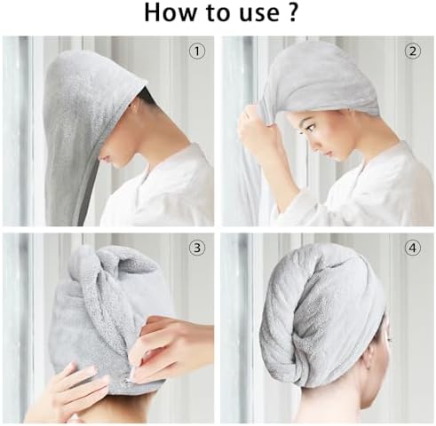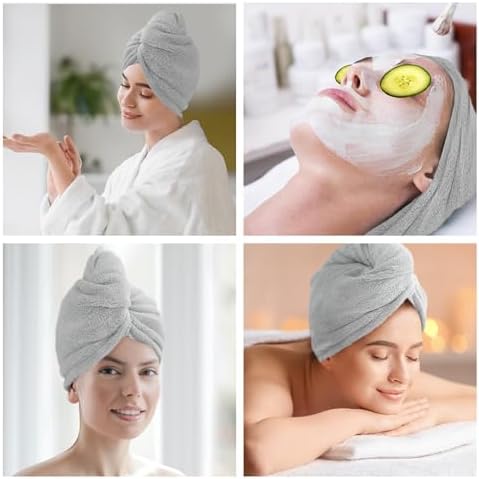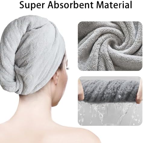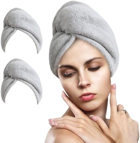 AGLIFEFY 2 Pack Microfiber Hair Towel Wrap for Women Super Absorbent Quick Dry Hair Turban for Drying Curly, Long & Thick Hair 10 inch X 26 inch Lightgrey+Lightgrey