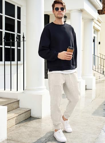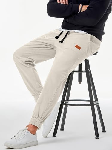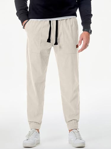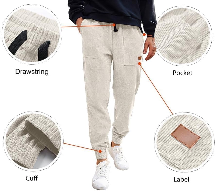 JMIERR Men's Corduroy Running Pants Casual Work Pants Drawstring Elastic Waist Loose Cone Sports Pants with Pocket