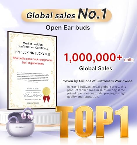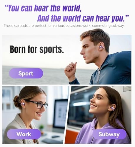 King Lucky Clip on Earbuds Open Ear Wireless Bluetooth 5.4 Headphones with Mic,50H Play,Noise Cancelling,Waterproof,Sports Ear Buds,Comfortable for Small Ears & Glasses Wearers,Workouts (Purple)