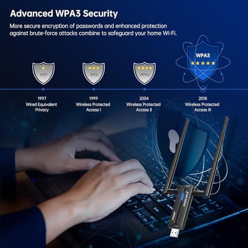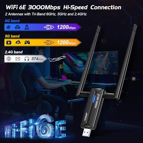 EDUP USB 3.0 WiFi 6E Adapter AX3000M Wireless WiFi Dongle Network Adapter 802.11AX Tri-Band 6GHz\/5GHz\/2.4GHz Dual 5dBi Antennas for PC Compatible with Windows 11\/10 64Bits