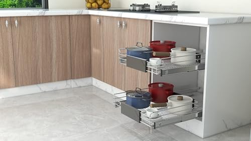 STORKING Expandable Pull Out Cabinet Organizer, Slide Out Drawers for Kitchen Cabinets, Heavy Duty Storage Drawers, Chrome Plated Cabinet Wire Shelf, Adjustable Width 12.5~20.2" W x 17.3" D
