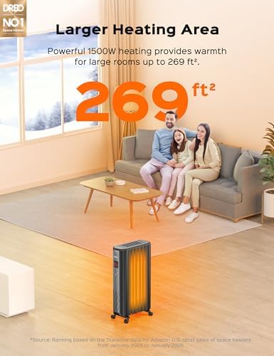Dreo Oil Filled Radiator Heater, Electric Radiant Heater with Remote Control, 4 Modes, Overheat & Tip-Over Protection, 24h Timer, Digital Thermostat, Quiet Space Heater for Indoor Use Large Room