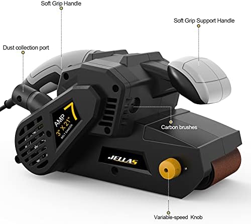 Jellas 3 × 21-Inch Belt Sander with Dust Bag, 7Amp Sander Machine with Variable-speed Control, 2 in 1 Vacuum Adapter, 10Feet (3 meters) Length Power Cord, Belt Sanders for Woodworking BS750-SD