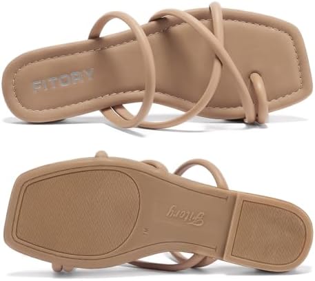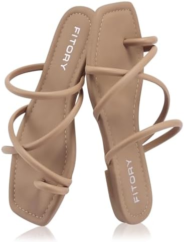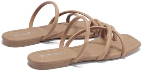 FITORY Women's Slide Sandals Flat Toe Ring Thongs with Cross Strap for Summer Size