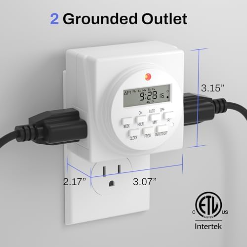 BN-LINK 7 Day Heavy Duty Digital Programmable Timer, 120V, 60Hz, Dual Outlet, Indoor, for Lamp Light Fan Security ETL Listed