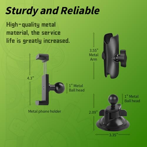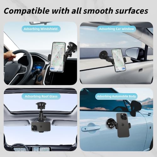 RomHaus Suction Cup Car Phone Holder, Ultra-Durable Metal Phone Holders for Your Car Windshield, 360° Rotation Car Mount for iPhone\/Samsung\/All Smartphone