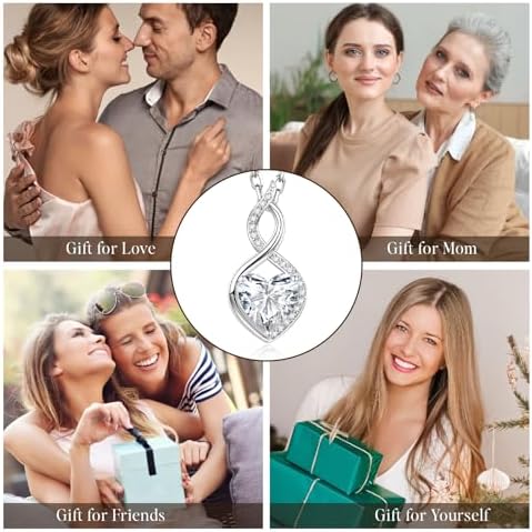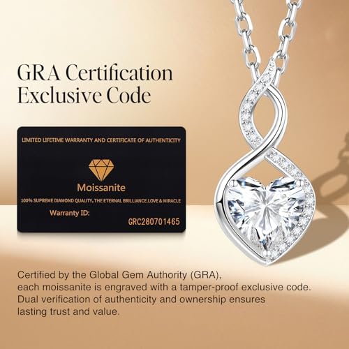 CACESTONE 1ct\/2ct Moissanite Heart Pendant Necklaces for Women, 925 Sterling Silver Imitation Diamond Moissanite Infinity Heart Necklace, Ideal Birthday Anniversary Jewelry Gifts for Mom Wife Her