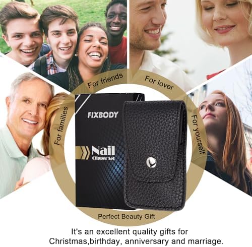 Nail Clipper Set, Ultra Sharp Black Stainless Steel Fingernail & Toenails Clipper and Nail File with Leather Travel Case,Great Christmas Gift,Stocking Stuffers for Men and Women