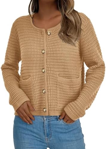 PRETTYGARDEN Women Knit Cardigan Sweaters Fall Fashion Long Sleeve Open Front Button Down Trendy Casual Jacket Winter Clothes