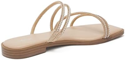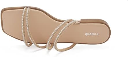 vodvob Women's Rhinestone Flat Sandals Slip on Memory Foam Sandals Open Toe Slide Sandals