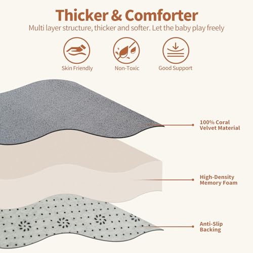 SUNYRISY Baby Play Mat for Floor, 1.4in Thick Memory Foam Padded Play Mats for Baby, Soft Velvet Infants Toddler Kids Play Mat Non-Slip Bottom, Crawling Baby Rugs for Nursery 80x80in