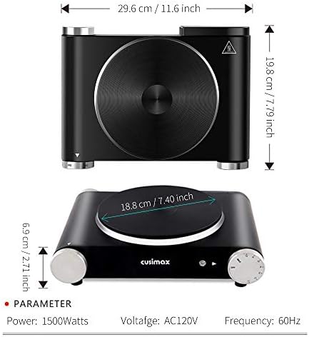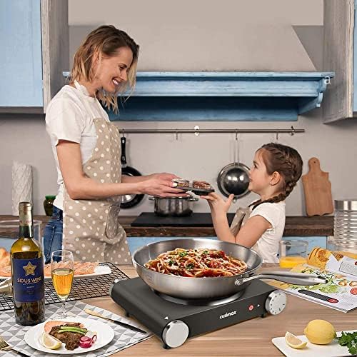 Cusimax Hot Plate Electric Burner Single Burner Cast Iron hot plates for cooking Portable Burner 1500W with Adjustable Temperature Control Stainless Steel Non-Slip Rubber Feet, Upgraded Version
