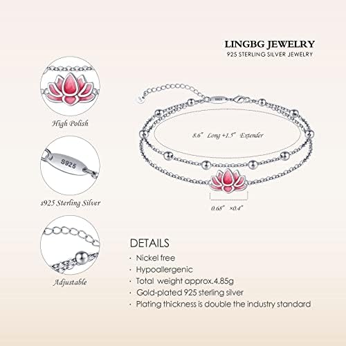 LINGBG JEWELRY 925 Sterling Silver Anklets Bracelets for Women Lotus Flower Anklets Dainty Beach Layered Bracelet Jewelry for Wife Girlfriend Friends