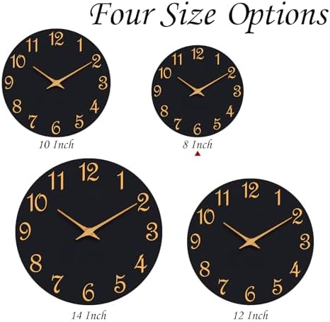 Roymnie Wall Clock, 8 Inch Modern Wall Clocks Battery Operated, Small Silent Non Ticking Clock Decorative for Kitchen, Bathroom, Bedroom, Desk, Bookshelf (Black Gold)