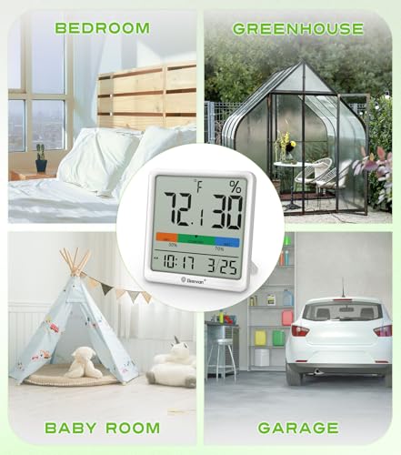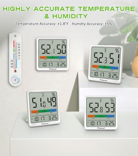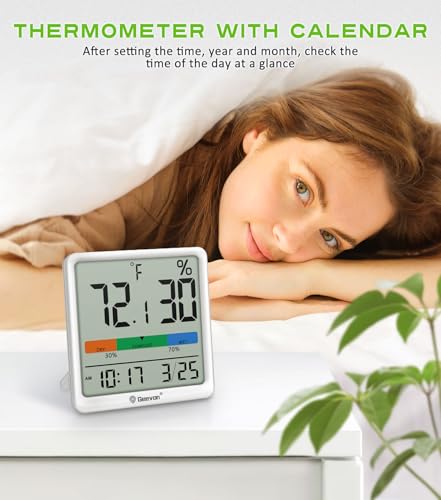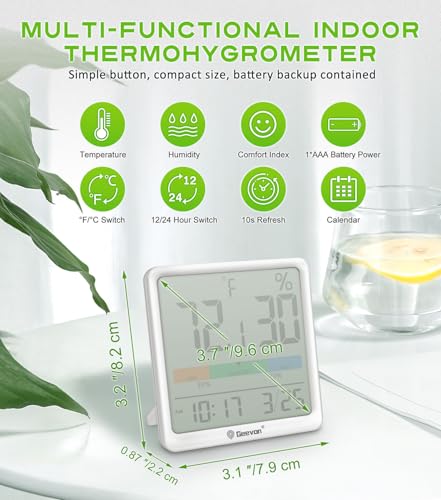 Geevon Digital Indoor Thermometer Hygrometer, Wireless Temperature Humidity Meter with Comfort Index, 1*AAA Battery, Calendar, Small Room Temperature Monitor for Home, Greenhouse, Bedroom, White