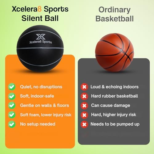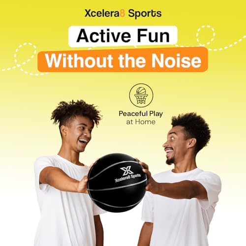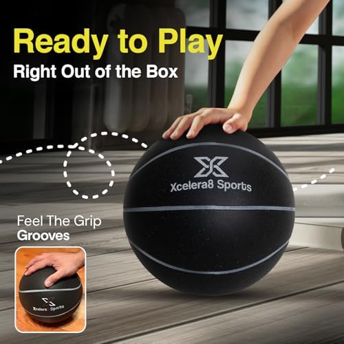 Xcelera8 Sports Silent Basketball Size 7 (29.5\u201D) Grooved Airless Indoor Basketball Quiet Dribbling Indoor Training Dribble Dream Silent Soundless Basket Ball Upgraded - Better Grip and Bounce
