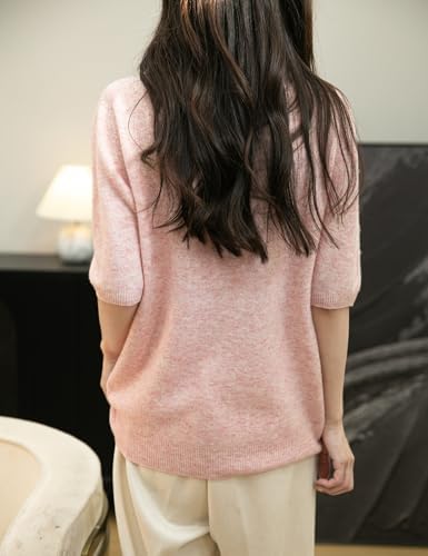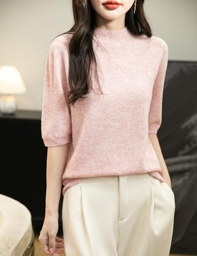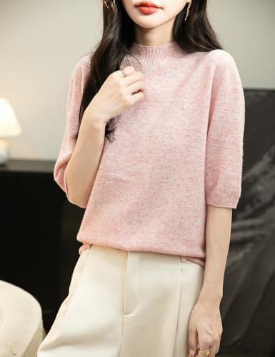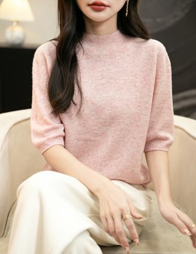 Chanyarn Women's 100% Merino Wool Spring Fall Winter First-Line Ready to Wear Seamless Knit Short Sleeve Mock Neck Sweater