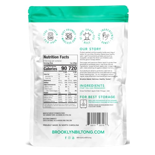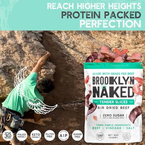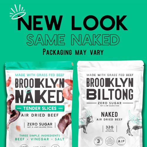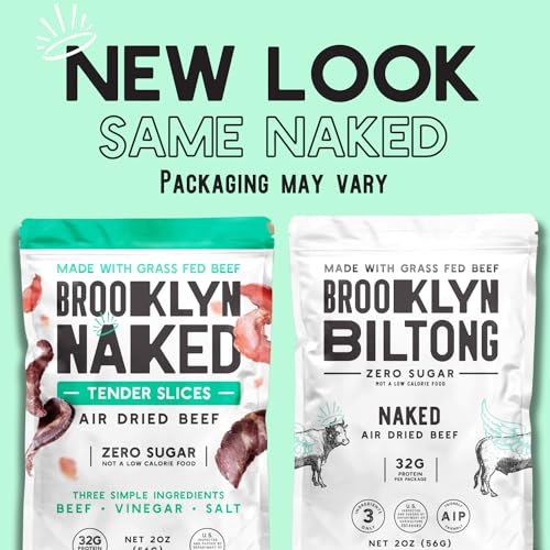 Brooklyn Biltong Air Dried Grass Fed Beef Snack, South African Beef Jerky (8 oz, Pack of 1) - Whole30 Approved, Paleo, Keto, Gluten Free, Sugar Free, Made in USA - (Naked)