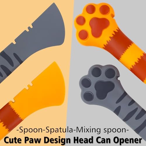Joyinjojo 2 Pack Dog Cat Food Spoon, Cute Paw Silicone Pet Can Opener Spatula Scoop Mixing Spoons for Wet Canned Food