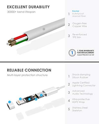 PALOVUE Lightning Earbuds - Compatible iPhone 14\/13\/12\/11 Pro Max, X, XS Max, XR, 8 Plus, 7 Plus - MFi Certified with Microphone - SweetFlow White