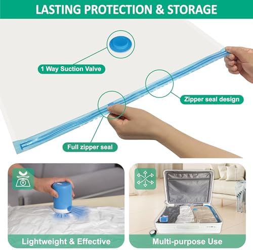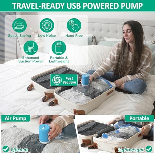 Cozy Essential Travel Vacuum Bags with Electric Pump, 6 Pack Vacuum Travel Bags for Luggage and Suitcase, Vacuum Seal Space Saver Compression for Clothes Clothing