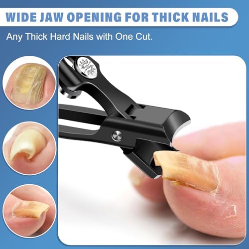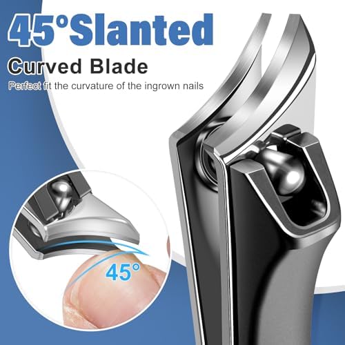 Slanted Nail Clippers for Men, Popular Wide Jaw Nail Clippers with Catcher, Sharp Ingrown Toenail Clippers with Slanted Curved Blade, Wide Opening Anti Splash German Nail Clipper Fingernail
