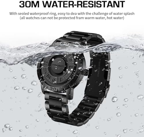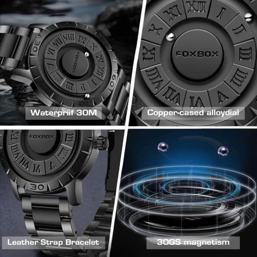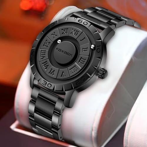 SACOSDING Mens Watches,Magnetic Suspension Analog Quartz Watch for Men,Classic Roman Time Scale Timing Bezel,Waterproof Super Magnetic Men's Watch, Casual Gift(Steel Belt-Black)