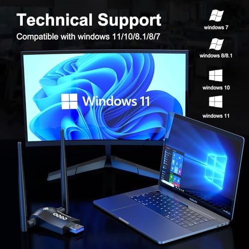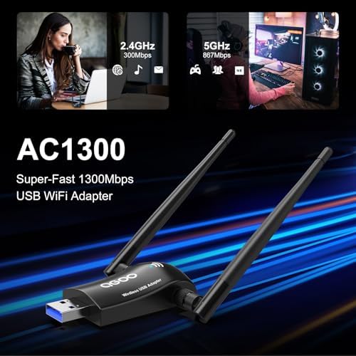 Wireless WiFi Adapter for Desktop PC - QGOO AC1300Mbps USB 3.0 Network Dongle with 5dBi High Gain Dual Antennas, 2.4GHz\/5GHz Dual Band for Laptop Computer Compatible Windows11\/10\/8