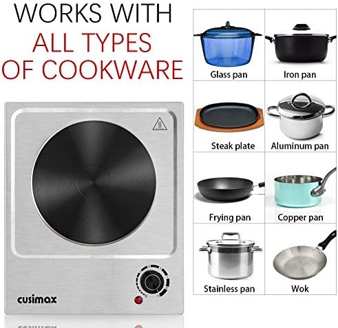 CUSIMAX 1500W Electric Hot Plate, Hot Plate for Cooking Electric Single Burner, Portable Countertop Burner Stainless Steel, Easy to Clean,CMHP-C150N