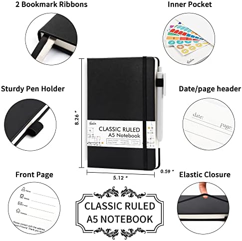 feela 3 Pack Notebooks Journals Bulk with 3 Black Pens, A5 Hardcover Notebook Classic Ruled Lined Journal Set with Pen Holder for Work Business Journaling Note Taking, 120 GSM, 5.1\u201Dx8.3\u201D, Bl