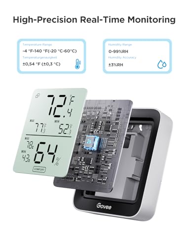 Govee Hygrometer Thermometer H5075, Bluetooth Indoor Room Temperature Monitor Thermometer with Remote App Control, Notification Alerts, 2 Years Data Storage Export(Only Supports 164ft Bluetooth Range)