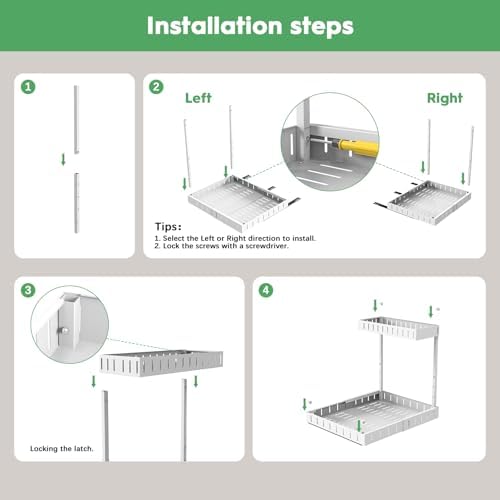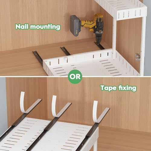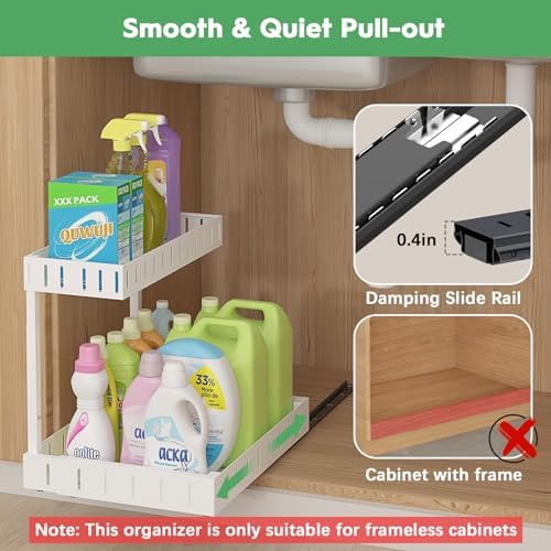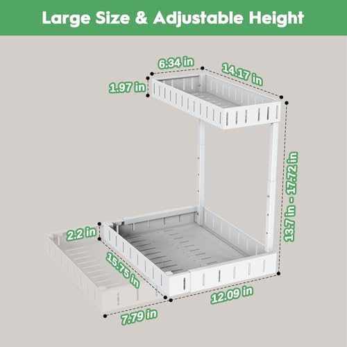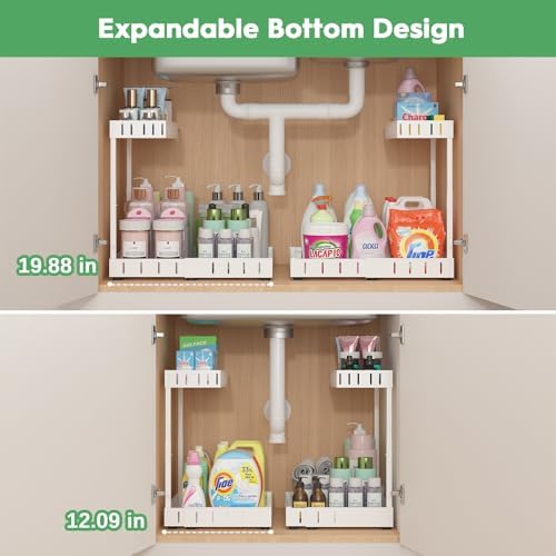 REALINN Under Sink Organizer, 2 Tier Expandable Under Cabinet Organizer, Heights Adjustable Pull Out Storage for Kitchen Bathroom Laundry, White, 2 Pack