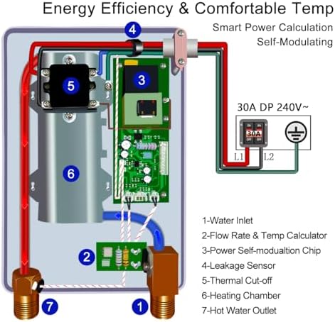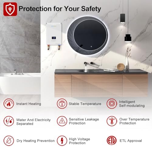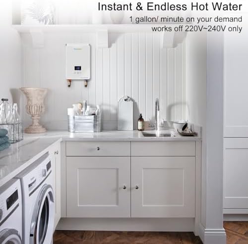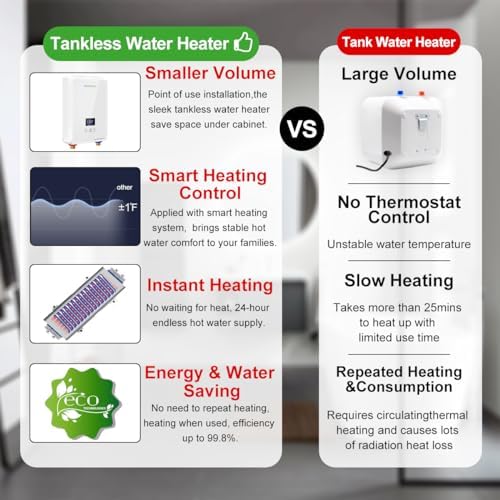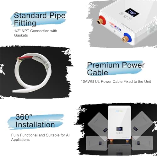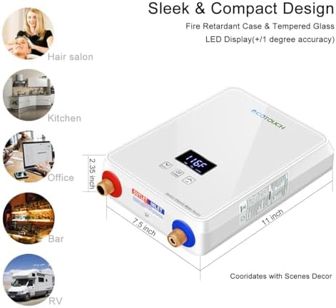Tankless Water Heater 5.5kw 240V, ECOTOUCH Point-of-Use Digital Display,Electric Instant Hot Water Heater with Self-modulating,Overheating Protection,White