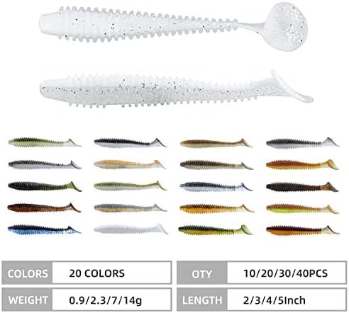 RUNCL Swimbaits Paddle 10\/20\/30\/40PCS, 5\/4\/3\/2 Inchs Paddle Tail, Soft Lure for Trout Crappie Bass, Durable Plastic Bait Swimmer for Saltwater\/Freshwater, Fishing Lover's Gift