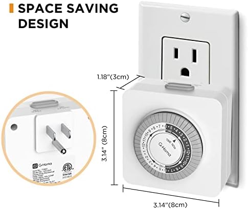 G-Homa 24-Hour Mechanical Timer Outlet with 2 Grounded Outlets - For Lamps, Holiday Lights