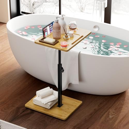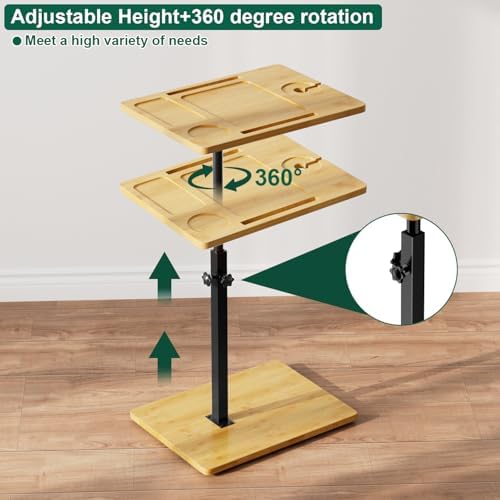 XNSDXV Bamboo C Table End Table Adjustable Height, 360°Swivel TV Tray for Couch, Snack Side Tables with Phone & Tablet Slot, C Shaped Couch Table for Small Place\/Bathtub\/Recliner\/Bed\/Sofa (Natrual