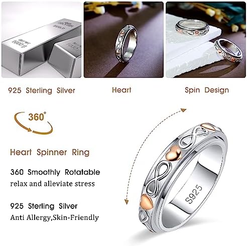 BELLNA Fidget Anxiety Rings for Women Men Infinity 925 Sterling Silver Spinner Rings for Anxiety Relieving Stress Rotatable Ring