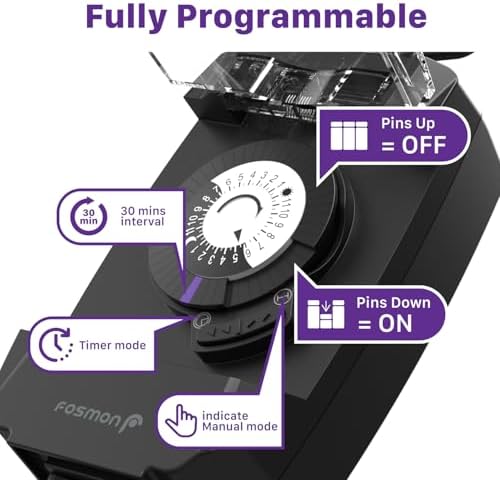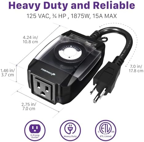 Fosmon Outdoor Light Timer Outlet Waterproof, 24 Hour Plug in Mechanical Pool Pump Timer Weatherproof, 3-Prong, Grounded, Heavy Duty, 15A 1\/2HP