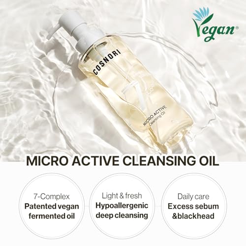 COSNORI Micro Active Cleansing Oil \u2013 Korean Vegan Facial Cleansing Oil, Fresh and Light Finish \u2013 Gentle Makeup Remover for Face, Hypoallergic, Fermented Oil Complexes, 6.7 fl.oz.