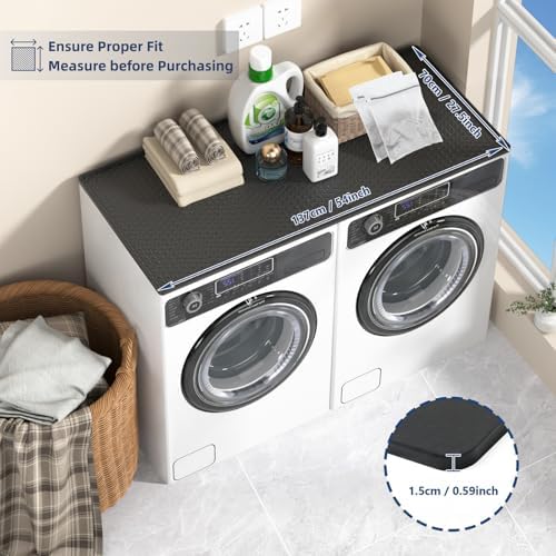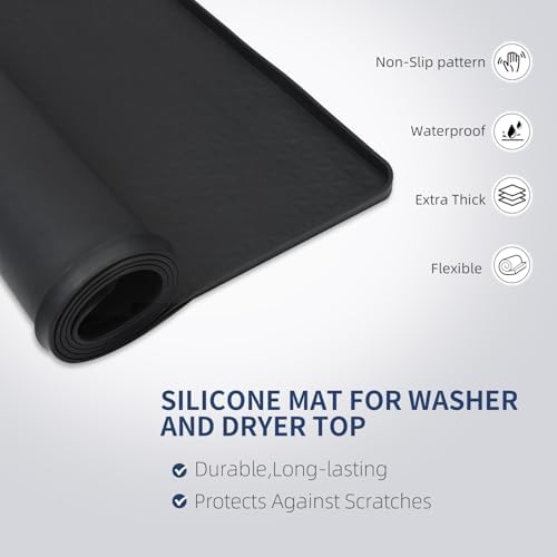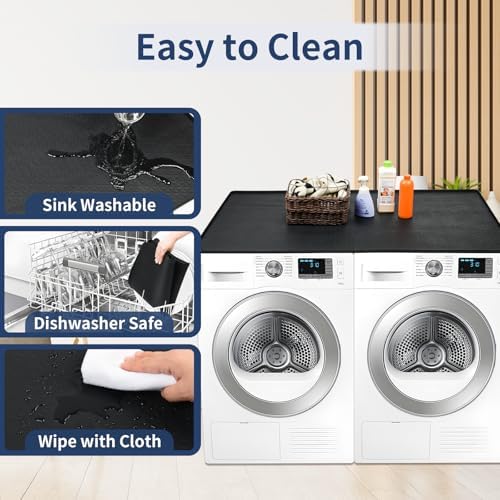 Dionikos 54" x 27.5" Silicone Washer Dryer Countertop Mat with 2 Laundry Bags \u2013 Non-Slip, Waterproof, Dustproof Cover for Laundry Room Organization & Surface Protection (Black, Extra