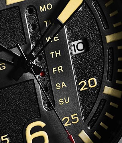 Stuhrling Original Mens Leather Watch -Aviation Watch, Quick-Set Day-Date Leather Band with Steel Rivets,