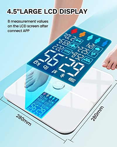 HEYAXA Smart Scale for Body Weight, Digiatl Weight Scale with Large LCD Display, 17 Body Composition Analyzer Sync to APP, Bathroom Body Fat Scale for BMI, BMR, Heart Rate, 400lb,White.