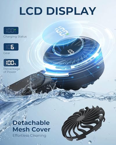 Handheld Fan, Portable Fan, 4000mAh Rechargeable Personal, 180° Foldable Mini Desk Fan with 6 Wind Speed, LCD Digital Display, Lanyard as Neck, Ultra Quiet, Pocket Size for Indoor Outdoor