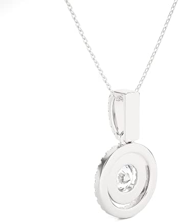 Privosa Fine Jewelry 1\/2 to 5\/8 Carat Diamond Double Halo Pendant Necklace for Women in 14k White Gold (F-G, SI2-I1, cttw) with 18 Inch Silver Chain and Lobster Claw