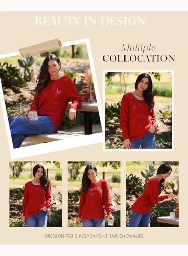 Dokotoo Women's Sweater 2025 Round Neck Cute and Elegant Soft Long Sleeve Hollow Knitted Hoodie Top