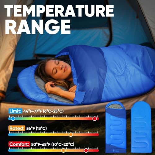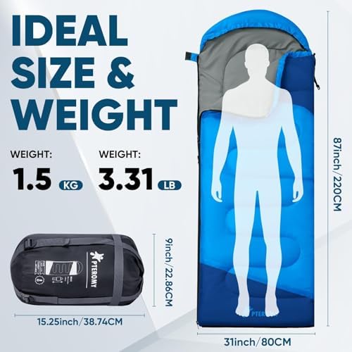 PTEROMY adult sleeping bag, lightweight waterproof backpack camping sleeping bag, suitable for warm and cold weather, camping essentials for hiking and outdoor travel