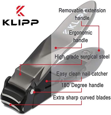 Nail Clippers for Men with Catcher - KLIPP Heavy Duty Razor-Sharp Self-Collecting Nail Cutter, Ergonomic Lever for Fingernails & Toenails, Ideal Gift for Men & Grooming Gifts Includes Ziplock
